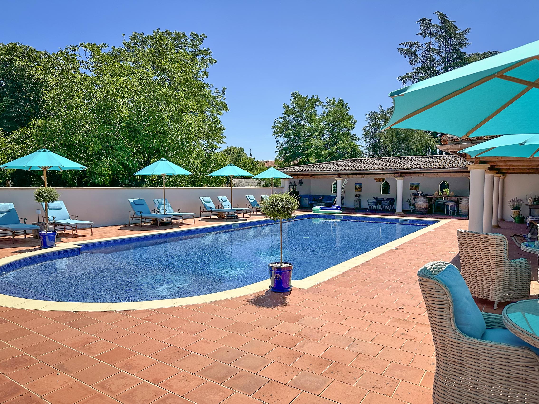 We can highly recommend wine tasting in the local Cahors appellation vineyards, some of which is absolutely excellent and world-class. We of course always keep our cellar stocked with many good wines, as there’s no better way of finishing off the evening either by the pool or in the courtyard with a glass of wine (or three). Guests will be able to use our Gin tree house, champagne pavilion by the river or cosy-up in the sunken fire-pit as the sun sets.